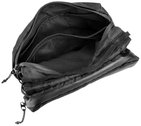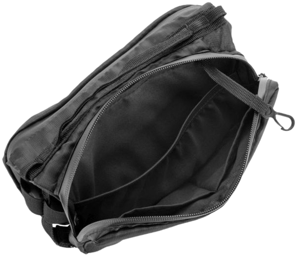 - Сумка містить дві основні кишені на блискавці. В одній – два невеликі відділення для кредитних карт і одна сітчаста кишеня. В іншій – два відділення для навушників та інших дрібниць і одна кишеня з карабіном;