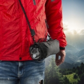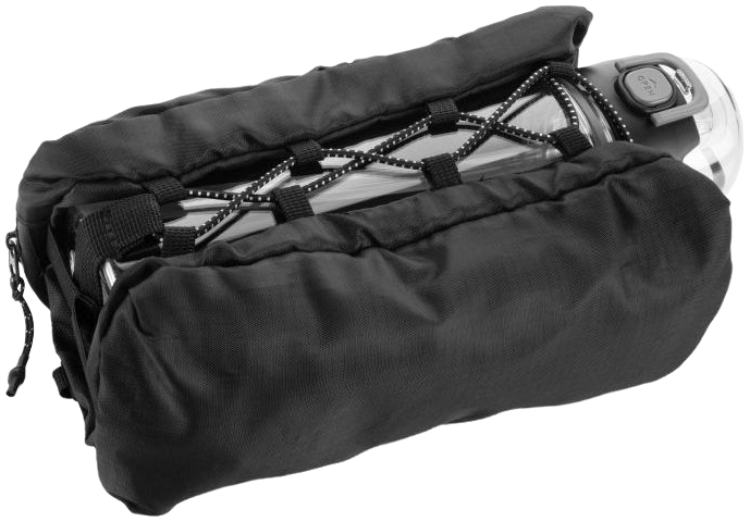 - Центральна зона між основними кишенями щільно прилягає до гумового кріплення для утримання пляшки;