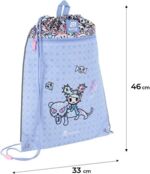 Головна особливість — практичність! Міцний зносостійкий поліестер витримує навантаження від розривів, принт стійкий до вигоряння. Сумку легко чистити, після звичайного ручного прання, вона швидко сохне і довго зберігає свій первісний вигляд. Щільна тканина захищає одяг і вміст рюкзака від піску та можливого бруду, який може бути на взутті. Шнурки оснащені спеціальними пластиковими пряжками, які автоматично розстібаються під сильним натягом. Таким чином, вони миттєво звільняють дитину, якщо вона потягне за шнурок або якось заплутається в ньому.