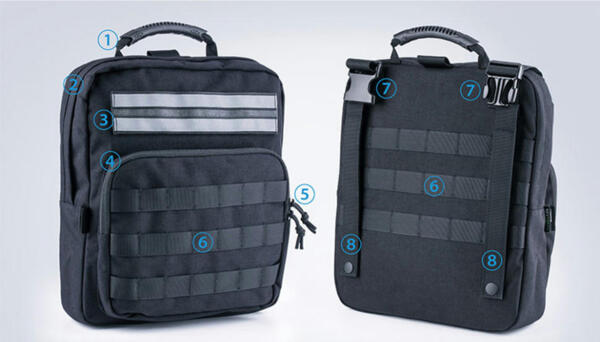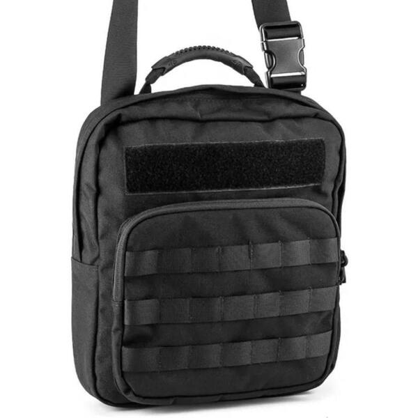 Сумка оснащена ручкою з нековзною вставкою для носіння в руці та широким плечовим ременем із регуляторами довжини. Система MOLLE на передній і задній частинах сумки дозволяє закріплювати додаткові аксесуари. Спереду передбачена липучка для патчів. Для пошиття використано нейлон Cordura 1000D, що вирізняється водовідштовхувальними властивостями та надійно захищає вміст від вологи. Матеріал стійкий до зачіпок і не втрачає форму з часом.