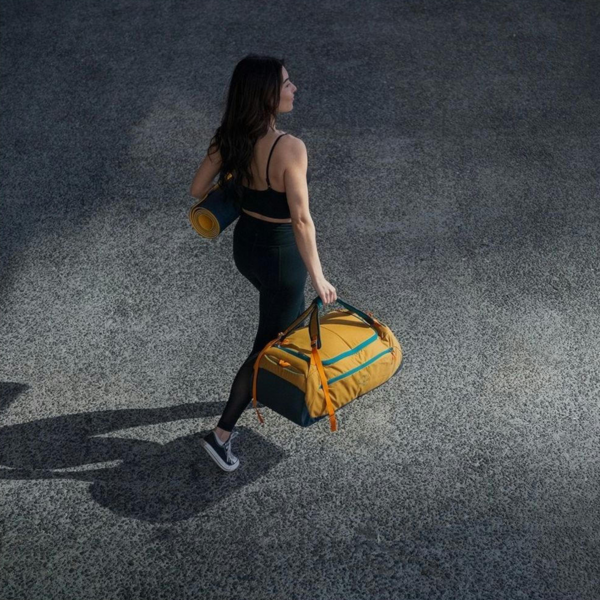 Сумка для повсякденного використання чи спортзалу, виготовлена з екологічних матеріалів із переробленої сировини. Така сумка стане ідеальним вибором для спортзалу, вихідних на дачі або коротких туристичних поїздок. Два варіанти перенесення — як рюкзак і як сумка — доповнюють один одного, забезпечуючи зручність при переїздах у транспорті або тривалих пішохідних ділянках. Вона оснащена бічними кишенями на блискавці, надійною фурнітурою та м'якою підкладкою для захисту речей.