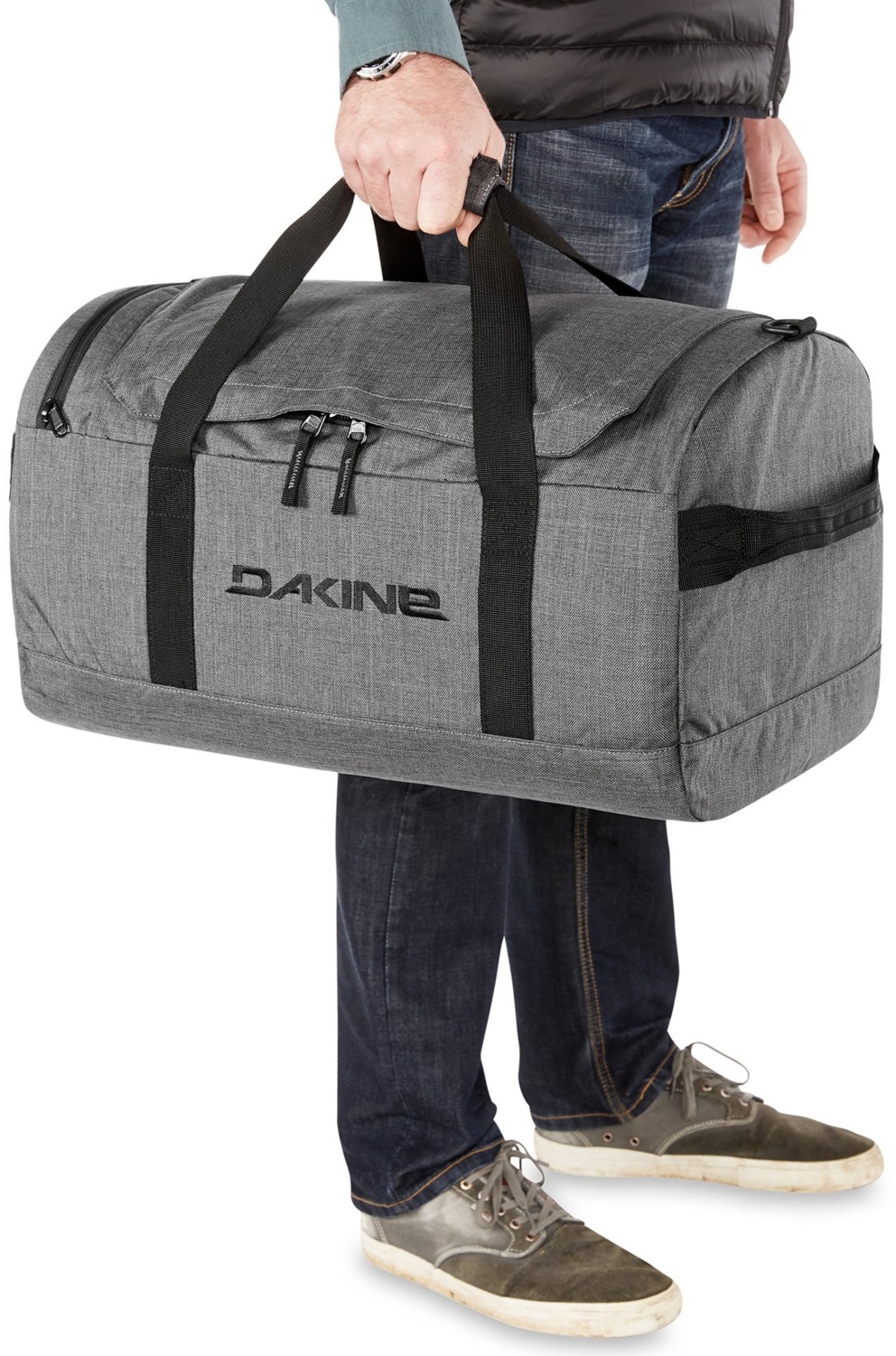 Подорожі на автомобілі та перевезення спорядження стали простішими. Важко перевершити універсальність міцної спортивної сумки. Сумка Dakine EQ має U-подібний отвір по всій довжині, що забезпечує легкий доступ до просторого основного відділення. На кінці сумки є кишеня на блискавці, в якій легко знайти дрібні предмети, а вся сумка складається в цю кишеню для зручного зберігання, коли вона порожня.