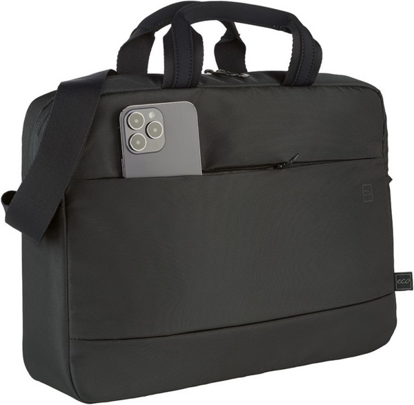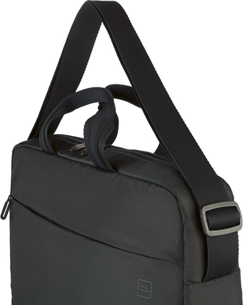 Легка сумка з тканини, виготовленої з переробленого пластику. Має компактний, сучасний дизайн. Підходить для 15,6-дюймових ноутбуків та 16-дюймових MacBook Pro. Оснащена зручним центральним відділенням, внутрішньою кишенею для ноутбука та зовнішньою кишенею на блискавці. Також наявний ремінь для кріплення на валізу та регульований плечовий ремінь.