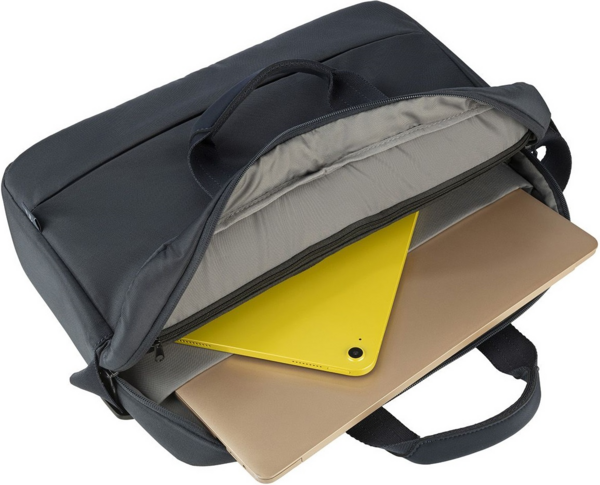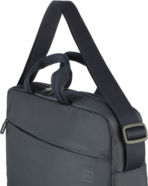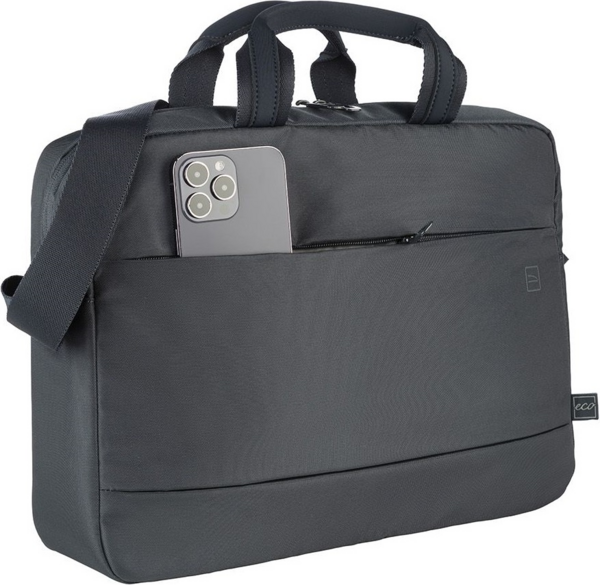 Легка сумка з тканини, виготовленої з переробленого пластику. Має компактний, сучасний дизайн. Підходить для 15,6-дюймових ноутбуків та 16-дюймових MacBook Pro. Оснащена зручним центральним відділенням, внутрішньою кишенею для ноутбука та зовнішньою кишенею на блискавці. Також наявний ремінь для кріплення на валізу та регульований плечовий ремінь.