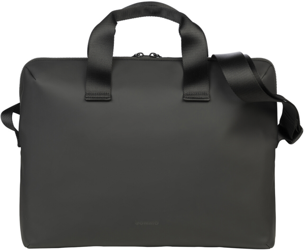 Сумка з мінімалістично-спортивним дизайном для 15,6-дюймового ноутбука та 16-дюймового MacBook, виготовлена з прогумованого матеріалу. Має одне велике відділення з внутрішнім відсіком для ноутбука та зовнішнє відділення для аксесуарів.