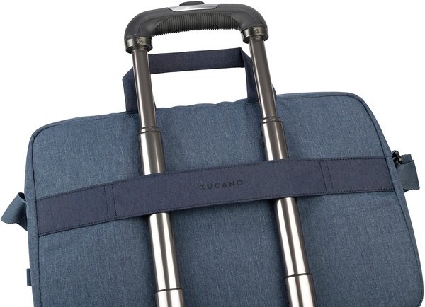 Призначена для перенесення ноутбука з діагоналлю екрану 13,3/14 дюймів або MacBook Pro 14 дюймів. Основний матеріал – меланжева тканина із переробленого пластику. Сумка Tucano Hop 13 з досить містким центральним відділенням, усередині якого відсік-кишеню для ноутбука. Зовнішня передня кишеня для аксесуарів. На задній частині сумки є ремінь для фіксації телескопічної ручки валізи.