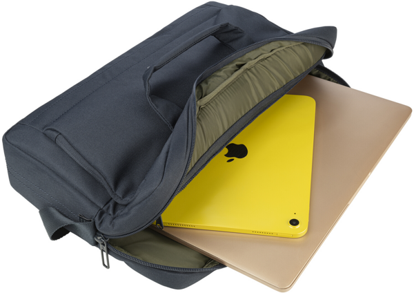 Компактна, легка сумка з міцної високотехнологічної тканини, ідеально підходить для 15,6-дюймових ноутбуків і 16-дюймових MacBook. Внутрішнє відділення для ноутбука з м'якою підкладкою оснащене сітчастою кишенею на блискавці. Також є внутрішнє переднє відділення для смартфонів та аксесуарів. Плечовий ремінь регулюється.