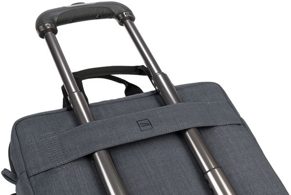На задній стінці сумки передбачено ремінець для кріплення сумки на телескопічну ручку валізи. Знімний плечовий ремінь з регулюванням по довжині та з пом`якшувальною плечовою накладкою для зручного перенесення та розподілу ваги.
