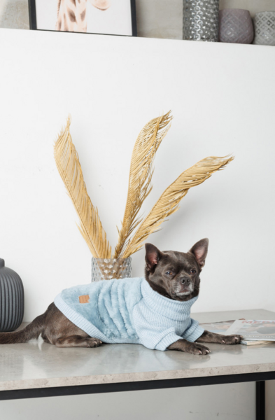Ніжний блакитний колір, вишукані лінії, цікаве сполучення фактур одразу привертають увагу. Светрик не лише красивий, але й дуже зручний – хвостики це оцінять одразу. Матеріал надзвичайно м’який та пухнастий, тож песику у вітряну прохолодну погоду буде тепло й затишно. Светр Fur – це ідеальне поєднання стилю та практичності! Комбінація рельєфного трикотажу та штучного хутра, вишукані лінії, трендовий колір – що ще потрібно, щоб стати центром уваги на прогулянці? Светрик має універсальний крій із відкритим животиком, тобто підійде і «хлопчикам», і «дівчаткам». Завдяки використанню еластичного м’якого трикотажу виріб легко вдягається через голову. Шви зроблені дуже акуратно, не натирають, не зминають шерсть. Светр Fur – це не лише про моду, це й про chill. Навіть у холод прогулянка в такому светрі забезпечить вашому хвостику повний релакс!