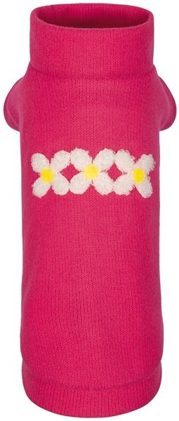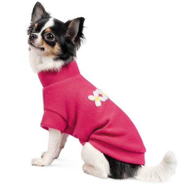 Рожевий светрик з квітковою аплікацією на спинці прикриває животик та шию – ідеальний варіант для дівчаток.