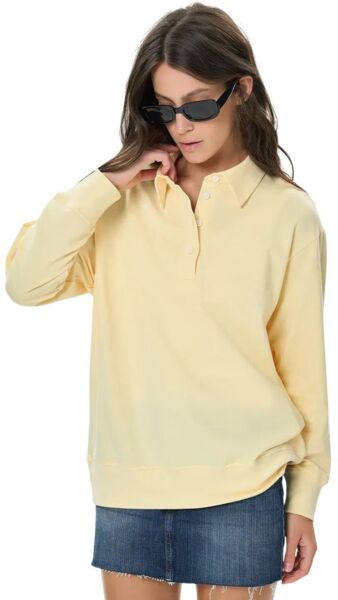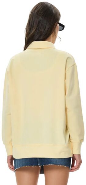 Жіночий світшот вільного крою з приспущеним рукавом - стильне поєднання спортивного комфорту та елегантних деталей. Відкладний комір з планкою на чотири ґудзики надає моделі стриманої класики, а манжети на рукавах і по низу виробу формують акуратний силует. Завдяки універсальному дизайну світшот легко поєднується як з джинсами і брюками, так і зі спідницями, створюючи образи для різних випадків.