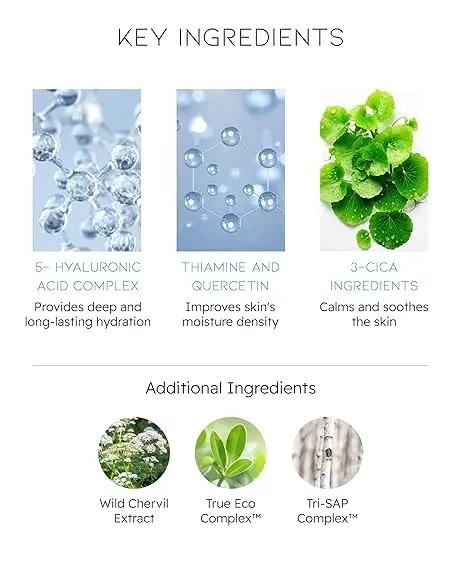 | Склад | Artemisia Annua Extract, Azadirachta Indica Leaf Extract, Camellia Sinensis Leaf Extract, Anthriscus Sylvestris Extract, Vitis Vinifera (Grape) Vine Sap, Beta-Glucan, Bambusa Arundinacea Juice, Betula Alba Juice, Trichosanthes Kirilowii Root Extract, Hydrolyzed Sodium Hyaluronate, Hydroxypropyltrimonium Hyaluronate, Thiamine HCl, Asiaticoside, Madecassic Acid, Asiatic Acid, Pentylene Glycol, Quercetin, Ethylhexylglycerin, Sodium Hyaluronate Crosspolymer, Soluble Proteoglycan, Water, Glycerin, Dipropylene Glycol, Butylene Glycol, Propanediol, 2,3-Butanediol, 1,2-Hexanediol, Panthenol, Betaine, Carbomer, Allantoin, Trehalose, Tromethamine, Ammonium Polyacryloyldimethyl Taurate, Xanthan Gum, Solidago Virgaurea (Goldenrod) Extract, Trisodium EDTA, Malachite Extract, Glyceryl Acrylate/Acrylic Acid Copolymer, Sodium Hyaluronate, Hydrolyzed Hyaluronic Acid, PVM/MA Copolymer |