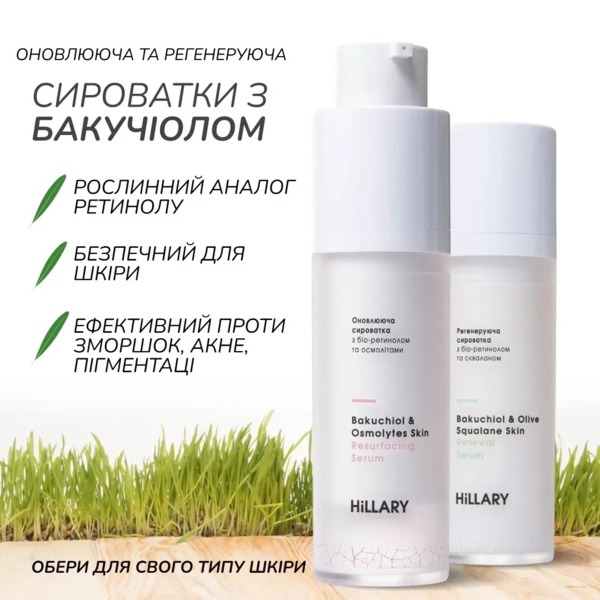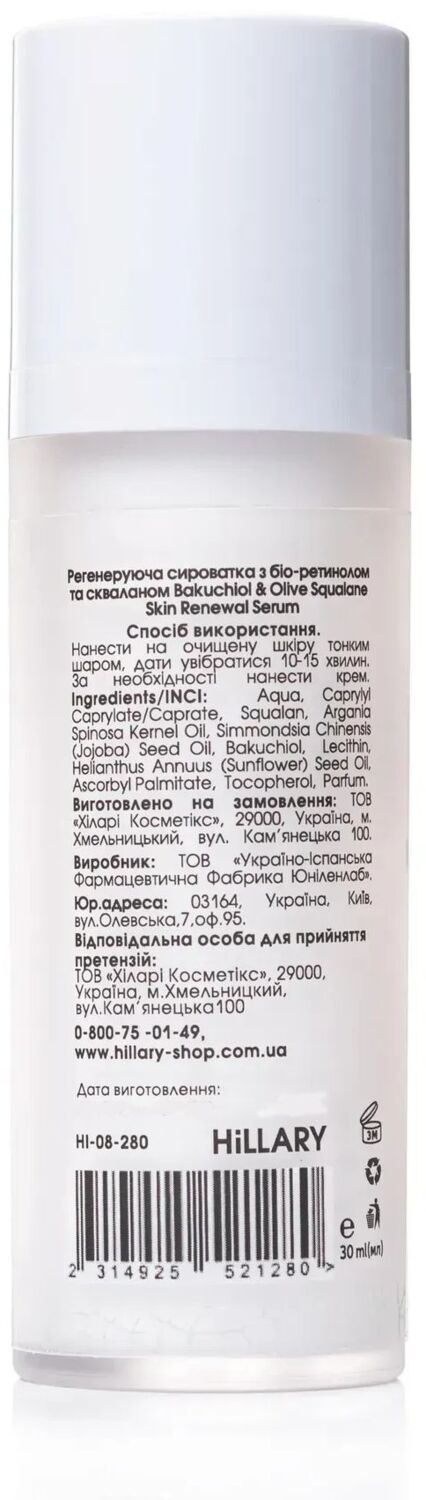 - Сироватка регенеруюча Hillary Bakuchiol & Olive Squalane Skin Renewal Serum з біо-ретинолом та скваланом 30 мл