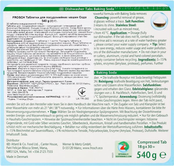 - Таблетки для посудомийних машин Frosch Сода 30x18 г