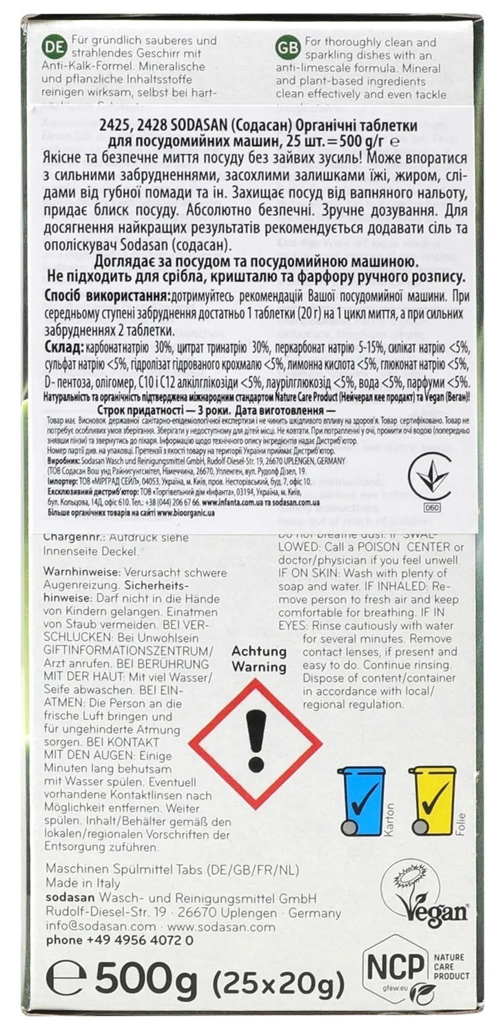 - Таблетки для посудомийних машин Sodasan 25 шт