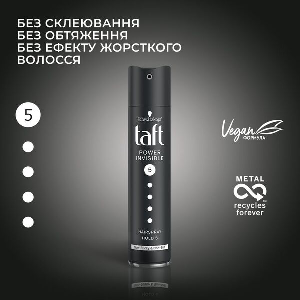 - Taft Лак 250 для волосся Power Невидима фіксація