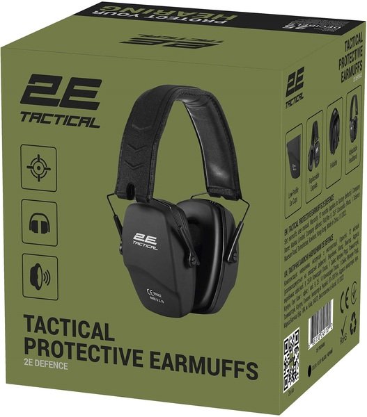 Тактичні захисні навушники 2E Defence Black NRR: 25 dB, пасивні (2E-TPE016BK)