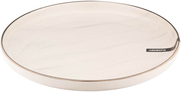 Вишуканий, практичний і зручний посуд серії Ardesto Marmo створено за останнім трендом – під мармур. Виготовлено з високоміцного матеріалу – кам’яної кераміки, яку вирізняє екологічність і гігієнічність. Кераміка не містить шкідливих сполук, не вступає в реакцію з продуктами та рідинами. Має високі експлуатаційні властивості: добре тримає температуру та не боїться її перепадів, витримує інтенсивне багаторазове використання. Тарілку обідню серії Ardesto Marmo бежевого кольору діаметром 27 см не рекомендовано мити в посудомийній машині та використовувати в мікрохвильовій печі.
