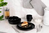 Обожнюю чорний посуд. Він естетично поєднується з білими скатертинами та золотистими столовими приборами. Маю чорні обідні та супові тарілки з серії Ardesto Trento та сірі десертні. Хочу ще чашки з ціє ж серії для повноти картини. Виглядають дорого, не дряпаються. Окремий плюс - можна мити в посудомийній машині.