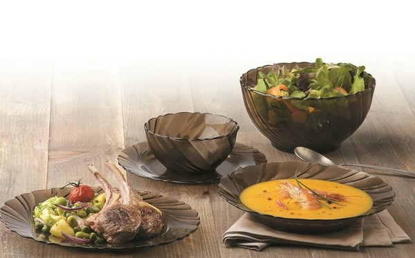 Размер идеален для супа или блюд с соусами. Прочная , устойчива к ударам и температурам, да и поцарапать сложно, подходит для микроволновки и посудомоечной машины, что удобно. Стеклянная поверхность позволяет видеть, что внутри. Цвет хорош, подходит для любого стиля сервировки. Стоимость тарелки адекватна качеству. В общем я бы хотела теперь собрать полный комплект этой посуды, очень уж красиво смотрится на столе, можно как на праздник так и на ежедневное пользование.