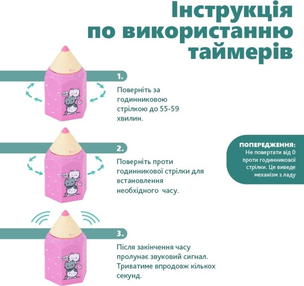 Механічний таймер Kite 171 - це корисний та цікавий інструмент для школярів. Він незамінний для навчання, веселих ігор та будь-яких щоденних справ. Механічний таймер дуже простий у використанні. Немає потреби в підключенні до електромережі або встановленні складних налаштувань - просто оберніть таймер на потрібний час та почніть використання. З цим упораються навіть дошкільнята. Звуковий сигнал після закінчення часу.