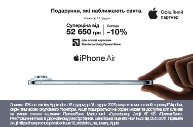 Купуй техніку Apple, оплачуй карткою MasterCard від ПриватБанку - отримай додаткову вигоду -10% від вартості товару.