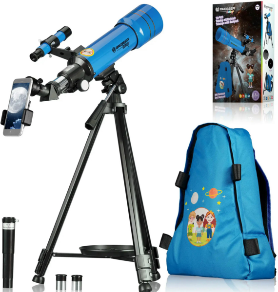 Телескоп Bresser Junior – чудовий подарунок, здатний захопити вашу дитину та зацікавити астрономією, як наукою. Ця модель рефрактора має достатні оптичні характеристики для початкового рівня телескопа, а простота конструкції дозволяє користуватися ним дітям, починаючи з 8-річного віку.