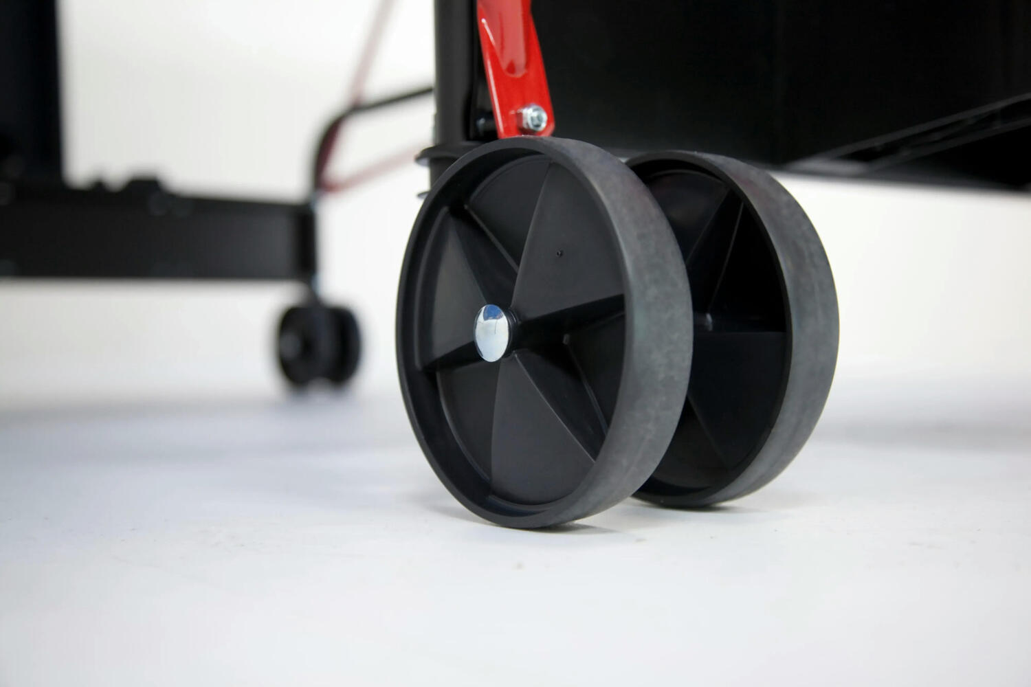 - Легке транспортування — переміщуйте стіл за допомогою чотирьох коліщат із фіксаторами на кожній половині. Колеса з гумовим покриттям забезпечують стабільність і покращують мобільність.
