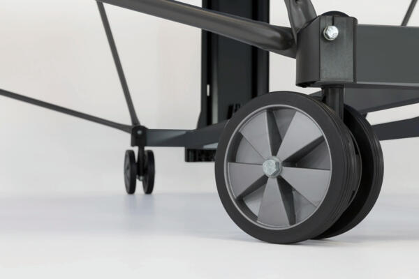 - Легке транспортування — 4 здвоєні колеса діаметром 128 мм полегшують переміщення в складеному вигляді.