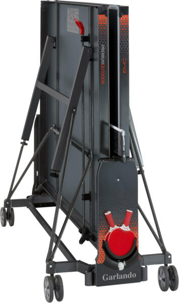 Тенісний стіл оснащений сіткою та тримачем для ракеток і м’ячів. Компактний пристрій автоматичного складання мінімізує зусилля після завершення гри, а система ECS дозволяє розблокувати стільниці одним рухом — швидко та безпечно. Складана конструкція з автоматичною системою блокування забезпечує зручне зберігання столу в домашніх умовах. Піднявши одну з половин стільниці, стіл можна використовувати як для одиночних тренувань, так і для гри людьми з обмеженими можливостями.