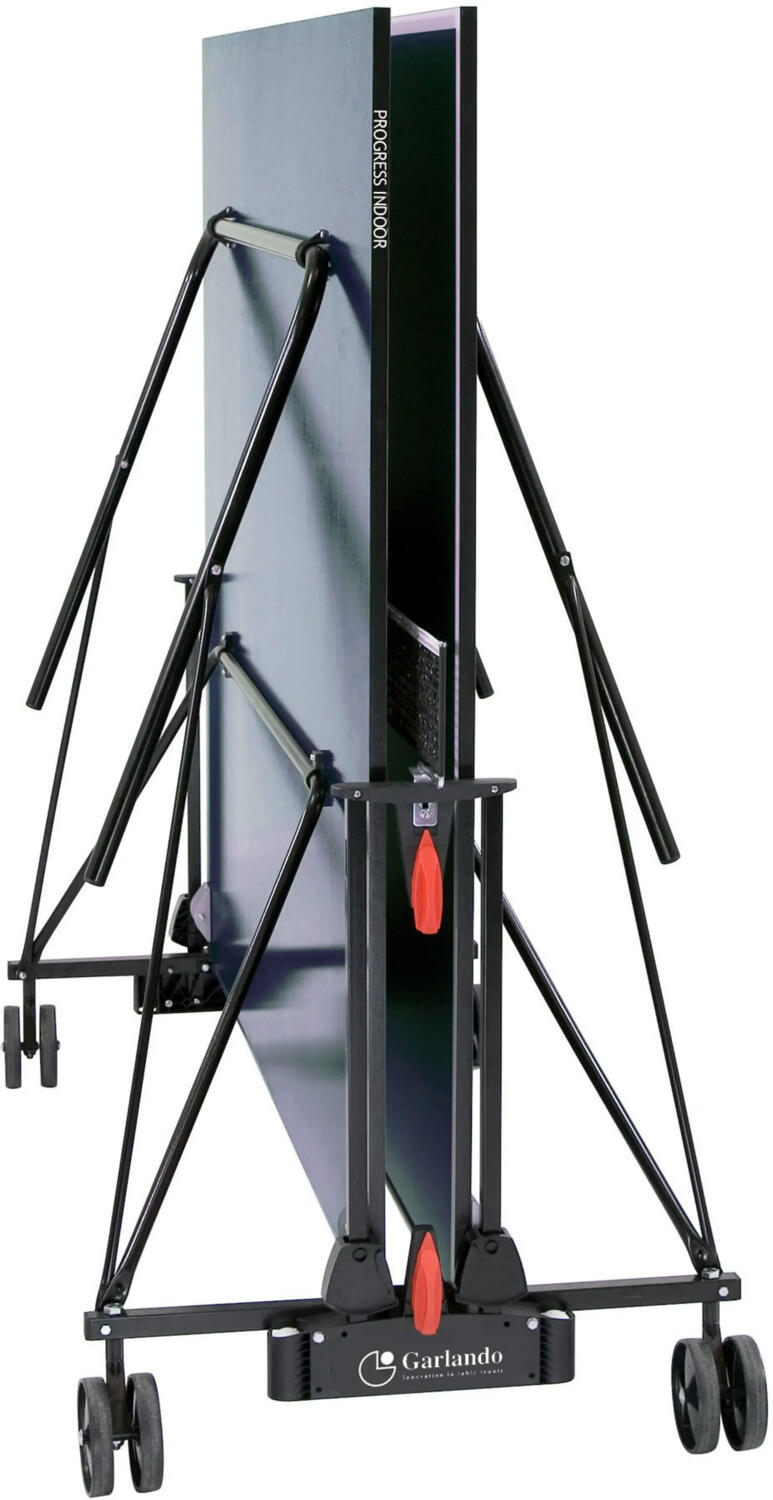 Garlando Progress Indoor 16 mm Blue (C-163I) призначений для гри в настільний теніс у закритих приміщеннях. Ігрова поверхня виготовлена з високоякісного ДСП товщиною 16 мм із меламіновим покриттям. Каркас і ніжки виготовлені з металевих трубок діаметром 25 мм із порошковим фарбуванням. Чотири здвоєні транспортувальні колеса діаметром 125 мм обертаються на 360°, що значно полегшує переміщення столу за потреби.