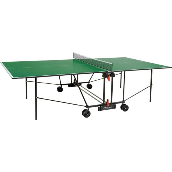 Garlando Progress Indoor 16 mm Green (C-162I) призначений для гри в настільний теніс у закритих приміщеннях. Ігрова поверхня виготовлена з високоякісного ДСП товщиною 16 мм із меламіновим покриттям. Каркас і ніжки виготовлені з металевих трубок діаметром 25 мм із порошковим фарбуванням. Чотири здвоєні транспортувальні колеса діаметром 125 мм обертаються на 360°, що значно полегшує переміщення столу за потреби.