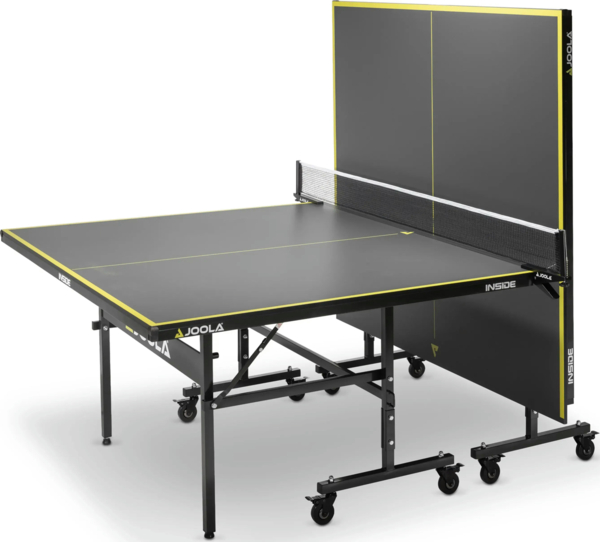 - Легке транспортування – переміщення столу Joola Inside 15 спрощене завдяки чотирьом коліщаткам з фіксаторами, встановленим на кожній половині. Гумове покриття коліс забезпечує стійкість і зручність у переміщенні.