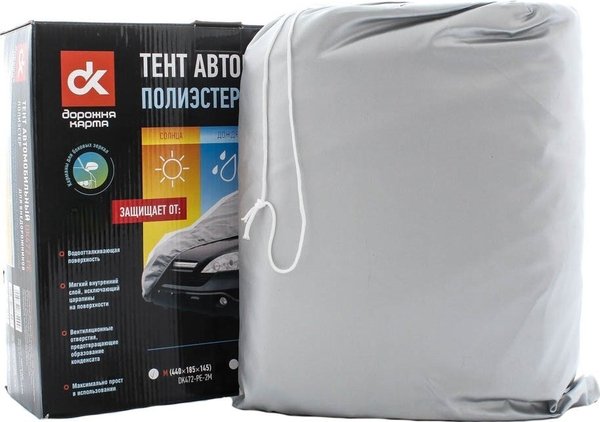 Тент автомобільний Дорожня карта призначений спеціально для того, щоб захистити салон і лакофарбове покриття кузова автомобіля від сонячних променів. Особливо необхідний такий чохол в літню пору року, коли ультрафіолетове випромінювання може мати негативний вплив на авто. Поверхня матеріалу має водовідштовхувальні властивості, завдяки чому чохол здатний захистити транспорт від опадів. Внутрішній шар м'який і виключає виникнення подряпин на поверхні автомобіля. Конструкція тенту передбачає наявність вентиляційних отворів, які запобігають утворенню конденсату і вогкості. Експлуатація автомобільного тенту максимально проста і комфортна. Компактні розміри дають змогу його завжди возить із собою, водночас не витрачати багато вільного простору. Для зручності тент упакований у спеціальну сумку.