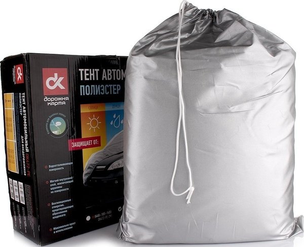 Тент автомобільний Дорожня карта призначений спеціально для того, щоб захистити салон та лакофарбове покриття кузова автомобіля від сонячних променів. Особливо необхідний такий чохол в літню пору року, коли ультрафіолетове випромінювання може мати негативний вплив на авто. Поверхня матеріалу володіє водовідштовхувальними властивостями, завдяки чому чохол здатний захистити транспорт від опадів. Внутрішній шар м'який і виключає виникнення подряпин на поверхні автомобіля. Конструкція тенту має на увазі наявність вентиляційних отворів, які запобігають утворенню конденсату і вогкості. Експлуатація автомобільного тенту максимально проста і комфортна. Компактні розміри дозволяють його завжди возить з собою, при цьому не витрачати багато вільного простору. Для зручності тент упакований в спеціальну сумку.