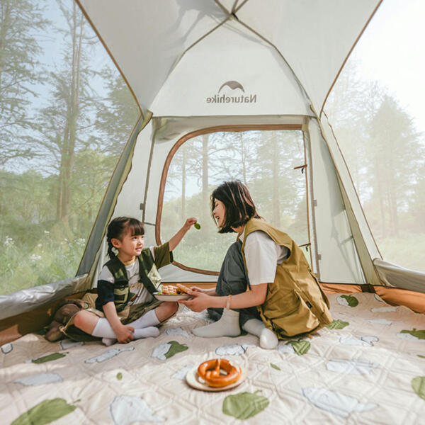 Тент-намет Naturehike призначений для літніх походів, пікніків та відпочинку на природі, пропонуючи легке та компактне укриття від сонячних променів, негоди та надокучливих комах. Розміри тенту у встановленому положенні складають 210х190х140 см, чого достатньо для відпочинку кількох користувачів. У моделі передбачений невеликий навіс-козирок над входом, що створює додаткову тінь. По краях є отвори для фіксації конструкції на землі за допомогою кілочків. Головна особливість моделі — автоматичний каркас. Для його встановлення не потрібні спеціальні навички, до того ж весь процес займає менше ніж хвилину: достатньо потягнути на себе центральне кріплення, щоб розправити бічні дуги.