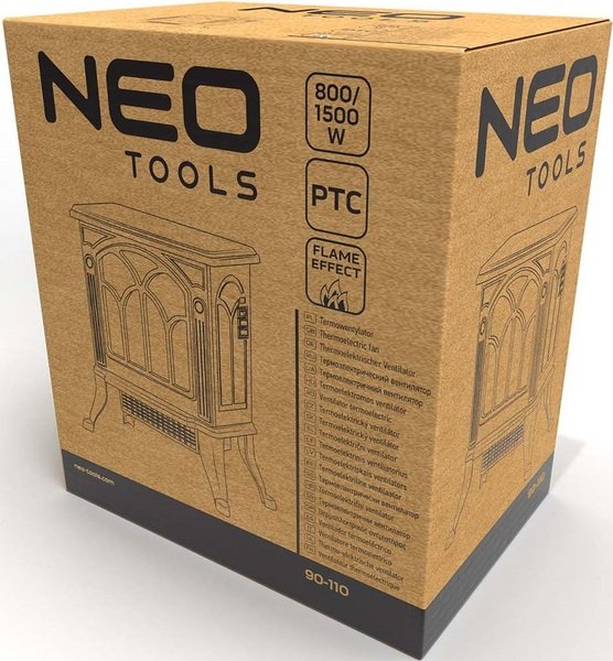 Площа обігріву цього тепловентилятора марки NEO становить від 20 до 30 кв. м, тобто прилад буде ефективно обігрівати невеликі та середні за площею приміщення. Тепловентилятор оснащений ніжками, завдяки яким його можна легко поставити на підлогу. Крім того, тепловентилятор має ефект полум'я, який надає затишок і елегантність, створюючи приємну атмосферу в приміщенні.