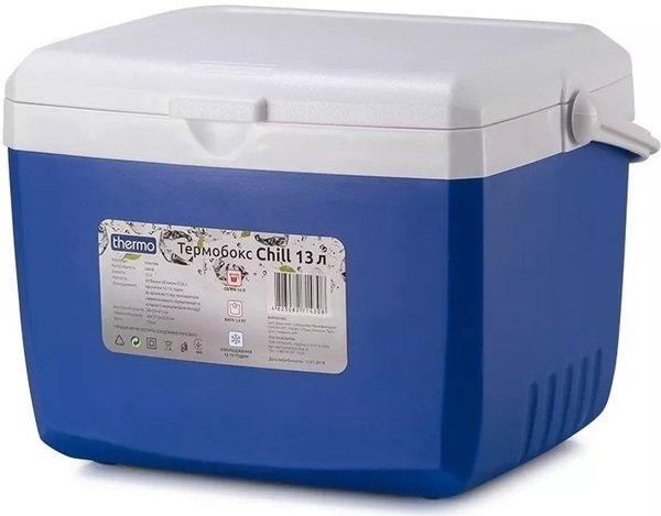 - Пластиковий термобокс на 13 літрів чудово підходить для зберігання напоїв та їжі в тривалих подорожах або відпочинку на природі.