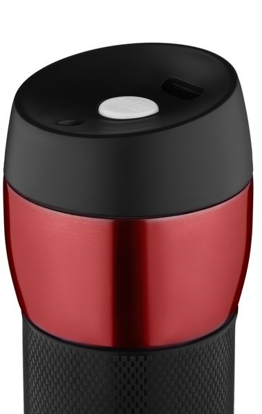 Термочашка на 450 мл з вакуумної технологією зберігання температури – до 8 годин для гарячих напоїв, і 12 годин для холодних. Зовнішня металева частина пофарбована в червоний колір з глянцевою текстурою. Для зручності передбачено силіконове покриття під долоню. Внутрішня частина виконана з нержавіючої сталі 18/10. Нескользящая основа запобігає перевертання, а пластикова кришка отримала силіконову прокладку і кнопку відкриття отвори для пиття.