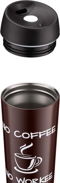 Термокухоль Ardesto Coffee Time виготовлено в ергономічному дизайні з високоякісної нержавіючої сталі. Механізм відкривання термокухля – зручна кнопка-клапан. Об’єм становить 450 мл. Термокухоль зберігає температуру гарячого напою 8 год, холодного – 16 год. Не містить BPA. Не рекомендовано мити в посудомийній машині.