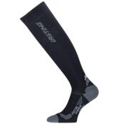 Rtl - це антибактеріальні компресійні шкарпетки для бігу, виготовлені з одношарового плюшу. Ці шкарпетки мінімізують ріст бактерій за будь-яких обставин і забезпечують приємне відчуття свіжості навіть під час інтенсивних фізичних навантажень. Зони, що піддаються високому навантаженню, такі як низ, носок і область ахіллесової п'яти, посилені двошаровим матеріалом, який утворює амортизуючий шар, що захищає користувача від натоптишів і мозолів. Верхня частина широка та надзвичайно гнучка, приємно облягає гомілку та литку, не створюючи неприємних відчуттів.