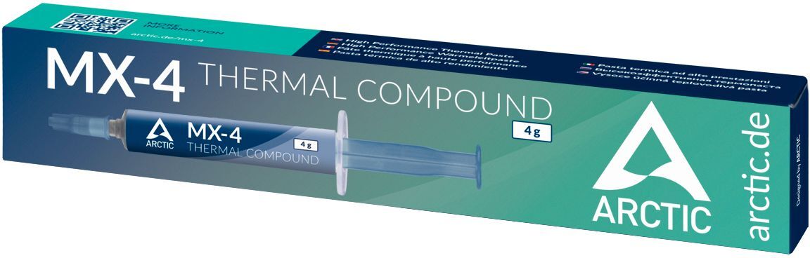 Поверхні процесорних чіпів і охолоджувачів покриті мікроскопічними вм'ятинами; термопаста MX-4 від ARCTIC складається з мікрочастинок, які заповнюють ці порожнини. Це забезпечує надзвичайно високу теплопровідність, гарантуючи швидке та ефективне відведення тепла від процесора або графічного процесора. Завдяки своїй видатній продуктивності MX-4 є не тільки чудовим вибором для оверклокерів та ентузіастів, але й для інших застосувань, що вимагають теплопередачі. MX-4 безсумнівно доводить, що висока продуктивність не обов'язково вимагає високої ціни.