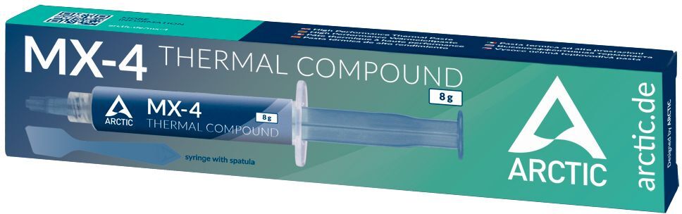 Поверхні процесорних чіпів і охолоджувачів покриті мікроскопічними вм'ятинами; термопаста MX-4 від ARCTIC складається з мікрочастинок, які заповнюють ці порожнини. Це забезпечує надзвичайно високу теплопровідність, гарантуючи швидке та ефективне відведення тепла від процесора або графічного процесора. Завдяки своїй видатній продуктивності MX-4 є не тільки чудовим вибором для оверклокерів та ентузіастів, але й для інших застосувань, що вимагають теплопередачі. MX-4 безсумнівно доводить, що висока продуктивність не обов'язково вимагає високої ціни.