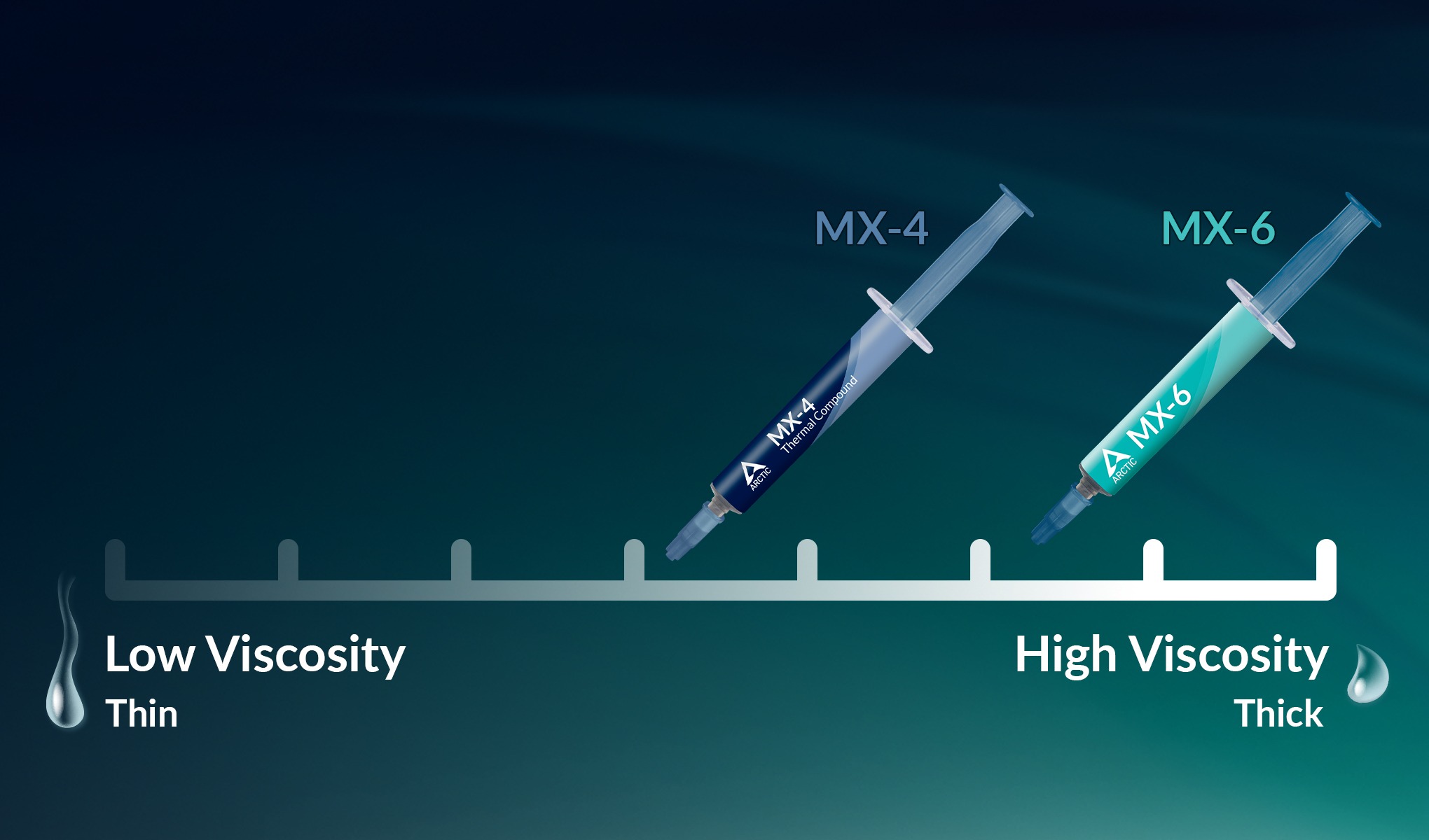 Залежно від особистих уподобань та сфери застосування, можна віддати перевагу більш рідкій або густішій термопасті. Відмінні властивості, що запобігають висиханню та розтіканню, забезпечують стабільну довготривалу ефективність. Термопасти ARCTIC мають оптимальну в'язкість для вашого застосування.