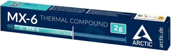 ARCTIC MX-6 досягає максимальної продуктивності без вигоряння, безпосередньо після нанесення та розподілу. Все це досягається без використання будь-яких відомих інгредієнтів, таких як дорогий алмазний пил або різні частинки дорогоцінних металів. Силіконовий гель, що використовується як носій, забезпечує оптимальний розподіл, який досягається завдяки рівномірному тиску контакту, наприклад, під час монтажу радіатора.
