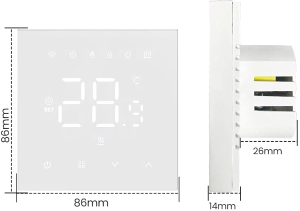 Терморегулятор для газового котла Navin — це сучасний програмований терморегулятор білого кольору з функцією Wi-Fi, призначений для керування газовими котлами. Термостат оснащений великим глянцевим сенсорним LCD-дисплеєм для зручності використання. Екран терморегулятора відображає всю необхідну інформацію для користувача (час, температуру, день тижня тощо). Завдяки наявності модуля Wi-Fi, термостат можна під'єднати до інтернету та синхронізувати з додатком на смартфоні (Smart life або Tuya). Це дозволяє дистанційно регулювати температуру, вмикати чи вимикати котел, змінювати налаштування та програмувати термостат з будь-якого місця, де є доступ до інтернету. Також Ви можете керувати пристроєм за допомогою голосу, адже розумний термостат працює з Alexa та Google Home Assistant. Використання терморегулятора Navin з WiFi для керування газовим котлом дозволяє значно зменшити витрати на енергоносії завдяки точним налаштуванням і гнучкому розкладу роботи, а також забезпечує постійний віддалений контроль зі смартфона.