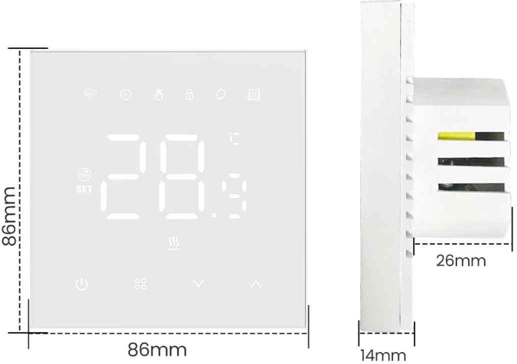 Монтаж термостата простий і виконується у квадратний підрозетник. У комплекті є детальна інструкція та схема підключення.