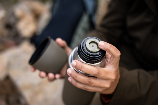 Якщо ви хочете з нетерпінням чекати на гарячий напій після довгої 24-годинної подорожі, вам знадобиться вакуумна фляга, яка добре зберігає тепло - як ця модель з нержавіючої сталі. Цей легкий, компактний термос місткістю близько 500 мл і двома горнятками для пиття ідеально підходить для того, щоб насолоджуватися теплими, гарячими або навіть холодними напоями. Вона легко відкривається за допомогою кнопки. Додаткова пробка входить до стандартної комплектації.