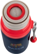 Такий термос надійніший та міцніший, аніж термос зі скляною колбою: він не розіб'ється і не розколеться при випадковому падінні. А це дуже важливо для маленьких непосид з їх прискореним ритмом життя. Кришка термоса – функціональна чашечка з ручкою, з якої приємно та зручно пити. Стінки термоса не нагріваються, тому його комфортно тримати в руках.