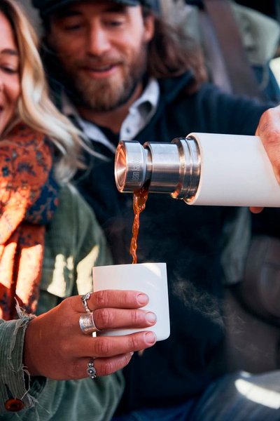 - Конструкція ізоляції Climate Lock: подовжена пробка вкручується глибше за край вакуумної колби. Рідина не стикається з неізольованими частинами термоса і довше зберігає температуру.
